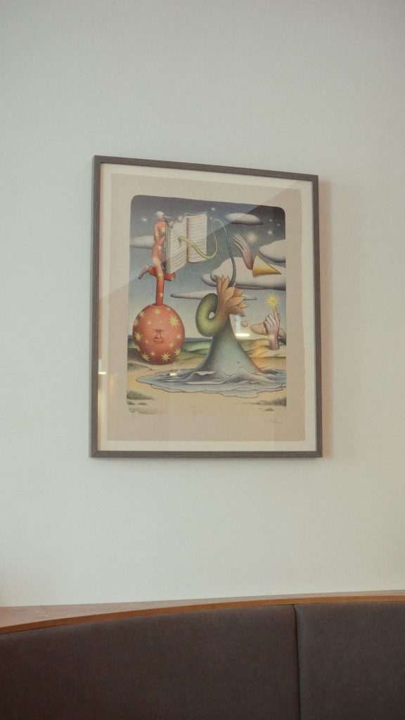 Нові роботи органічно вписалися в інтер’єр O’CAKE і стали його природним продовженням. Простір із високими стелями, світлом і мінімалістичними формами отримав ще один рівень глибини — тепер тут є не лише дизайн, а й сучасне мистецтво, створене спеціально для цього місця.