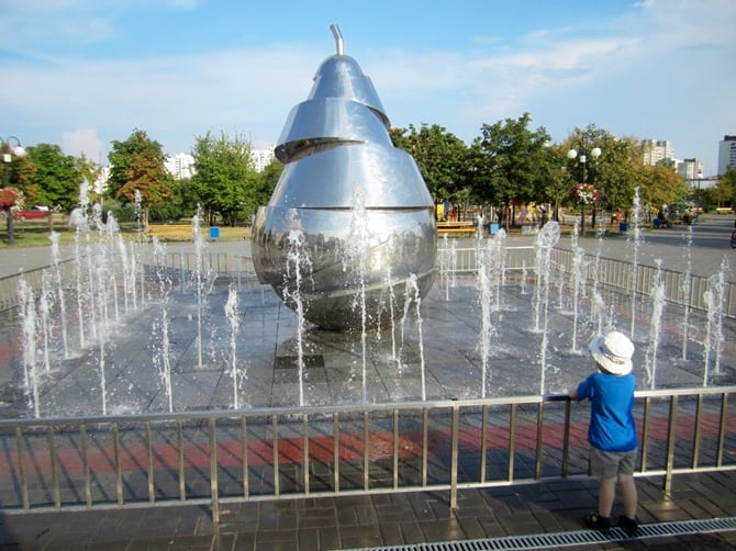 Фонтан у формі груші, відомий як «Фонтан закоханих», був встановлений у 2012 році в парку «Позняки», неподалік від станції метро «Позняки». Ця унікальна скульптура заввишки 4 метри є роботою київського скульптора Олексія Золотарьова, який став учасником фестивалю сучасної скульптури Kyiv Sculpture Project 2012 та переможцем у номінації «Найкращий молодий український автор».